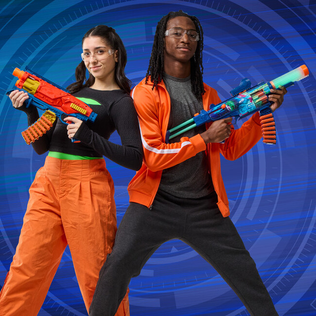 柔らかいダーツを発射するシューティングトイ。カラフルなデザインからスコープ付きの本格的なモデルまで、豊富な種類のブラスターが揃っており、小学生から大人のサバイバルゲームプレイヤーまで、幅広い層に親しまれています。ナーフに使用されている柔らかくて軽量なフォーム素材製のダーツは、国内外の安全基準を満たしているので、8才以上のお子様がご家族やお友達と安心して遊ぶことができます。