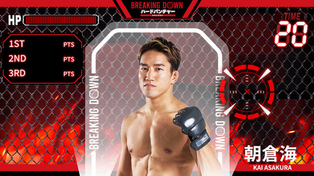 「VSファイターモード」にはBreakingDownで活躍する選手が期間限定で登場し、選手によって必要なポイントやタイミングのスピードが異なるため、多彩なスタイルで対戦ができます。朝倉未来氏の次に登場するのは、BreakingDownのスペシャルアドバイザーを務め、8月にUFC第2戦が決定した弟の朝倉海氏。元RIZINバンタム級王者で現UFCフライ級15位、UFCでもチャンピオンを目指す朝倉海氏との対戦を、『BREAKING DOWN ハードパンチャー ARCADE』でぜひお楽しみください。