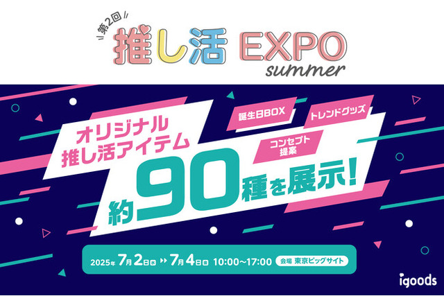 オリジナルグッズを製作するアイグッズ株式会社(本社:東京都渋谷区)は、2025年7月2日(水)~7月4日(金)、東京ビッグサイト東展示棟にて開催する「第2回推し活グッズEXPO 夏」(主催:RX Japan株式会社)に出展します。