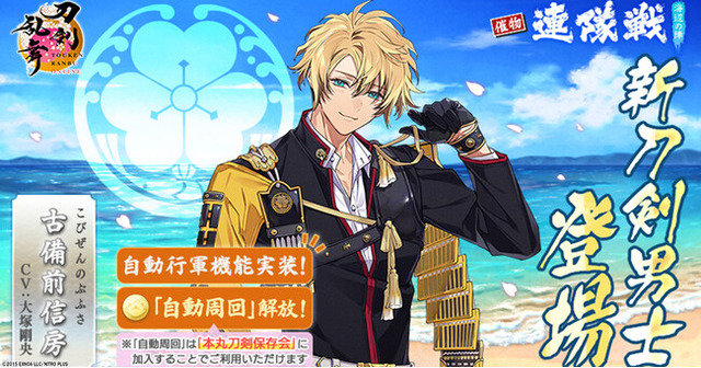 合同会社EXNOA(本社:東京都港区、CEO:村中 悠介、URL:https://games.dmm.com/)は、同社が開発・運営、株式会社ニトロプラスが世界観・シナリオ・キャラクターデザインを担当している、刀剣育成シミュレーション『刀剣乱舞ONLINE』にて、2025年7月1日(火)メンテナンス後より新刀剣男士「古備前信房(cv. 大塚剛央)」を入手できるイベント「連隊戦 ~海辺の陣~」を開催していることをお知らせいたします。