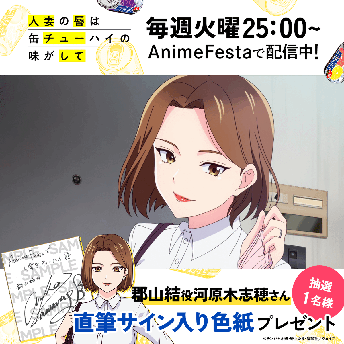 株式会社ウェイブ(本社:東京都豊島区、代表:関口航太)が運営するアニメ見放題サービス「AnimeFesta(アニメフェスタ)」は、本日、2025年7月1日(火)25:10より、アニメ『人妻の唇は缶チューハイの味がして』の配信を開始しました。