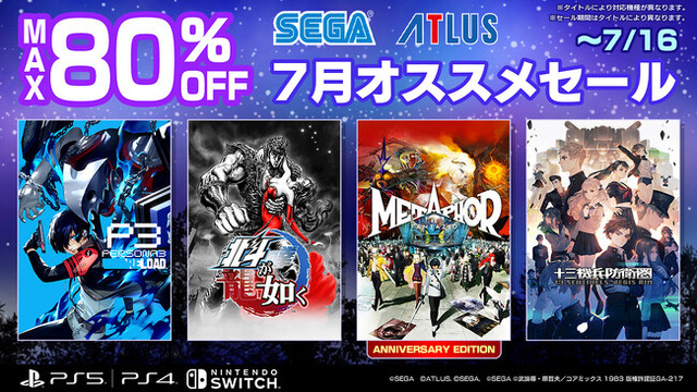 株式会社セガは、PlayStation(TM)Storeおよびニンテンドーeショップにて販売中の一部PlayStation(R)5/PlayStation(R)4/Nintendo Switch(TM)用タイトルを対象とし、期間限定で特別価格にて販売する「セガ 7月オススメセール」を開催中です。