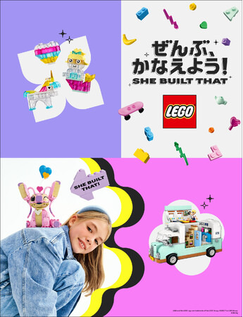 レゴジャパン株式会社(代表取締役社長:マイケル・エベスン/所在地:東京都港区、以下レゴジャパン)は、2025年7月1日(火)より「SHE BUILT THATレゴ(R) ぜんぶ、かなえよう!」キャンペーンを開始します。本キャンペーンは、女の子を含めた全ての子どもたちが性別にとらわれず、自由にクリエイティビティを発揮できるようにサポート、応援することを目的に実施します。本キャンペーンでは、全国の小中学生から絶大な人気を集めるインフルエンサー しなこさんをサポートクリエイターに迎え、店頭ポスターやYouTube・ソーシャルメディアコンテンツ、プレゼントキャンペーンなどを展開します。また、動画コンテンツ「ぜんぶ、かなえよう!しなこといっしょに(ハート)学校大変身!」では、しなこさん自身のクリエイティビティを通じて、子どもたちと一緒にレゴ(R)ブロックで見慣れた学校空間をもっとワクワク、そして、もっとキュートで鮮やかに彩られた空間に変身させました。動画コンテンツは7月2日よりレゴ公式YouTubeチャンネルにて公開します。