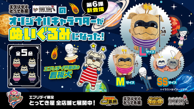 オリジナル景品第6弾として登場するのは、2012年にクレーンゲーム設置台数で世界一になった元祖世界一のクレーンゲームセンターエブリデイ行田店のマスコットキャラクター「宇宙犬」です。