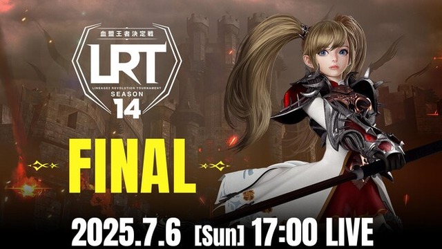 ネットマーブルは、スマートフォン向け超巨大マルチバトルRPG 『リネージュ2 レボリューション (Lineage2 Revolution)』(略称:リネレボ)において実施している、最強血盟を決める要塞戦イベント「LINEAGE2 REVOLUTION TOURNAMENT 血盟王者決定戦 SEASON14」(以下、「LRT SEASON14」)の決勝戦イベント「LRT SEASON14 FINAL」を7月6日(日)17:00より開催し、YouTube Liveにて生放送することをお知らせいたします。