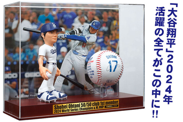 50号ホームランの瞬間を捉えた躍動感あふれるMLB公式フォトをバックにボールには大谷翔平の背番号にサイン。さらに2024年の活躍が一目でわかる解説や唯一無二の記録がボールに刻まれた記念ボール。その脇を固めるデフォルメフィギアは存在感抜群!!たった2024セットしか存在せず、世界に一つのシリアルナンバーが刻印されています。大谷翔平の偉業を称えるファン必見のコレクターズアイテムを永久保存版としてぜひ手に入れてください!