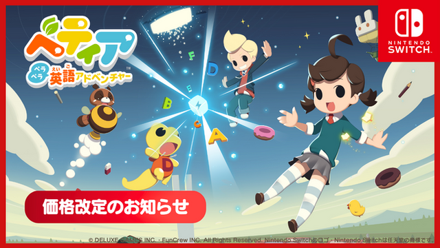 株式会社でらゲー(代表取締役:家次栄一)は、遊びながら英語が自然に学べるNintendo Switch(TM)向け体験型英語学習ゲームソフト『ベティア ペラペラ英語アドベンチャー』について、ダウンロード版のソフト本編と追加コンテンツの2作品、及び2作品をまとめたバンドル版の価格改定を、2025年7月15日(火)より実施いたします。