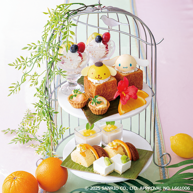 夏季限定の「サンリオキャラクターズ リゾートガーデンスイーツスタンド」はリゾートガーデンをイメージしたトロピカルなスイーツスタンドです。