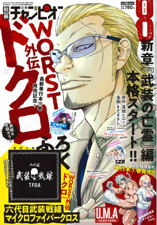 株式会社秋田書店(所在地:東京都文京区、代表取締役社長:山口徳二)は、発行している漫画誌『別冊少年チャンピオン』(編集長:小口太郎)7月11日(金)発売の8月号にて表紙&巻頭カラーに『WORST外伝 ドクロ』(原作:高橋ヒロシ、漫画:きだまさし)を掲載。付録では『WORST外伝 ドクロ』六代目武装戦線マイクロファイバークロスが、登場することをお知らせいたします。