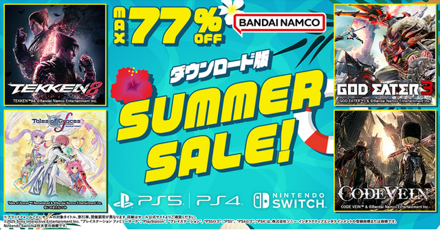 株式会社バンダイナムコエンターテインメントは、人気タイトルをお得に楽しめる期間限定の「Summer Sale」を開催いたします。ダウンロード版ゲーム『鉄拳8』や『テイルズ オブ グレイセス エフ リマスター』などが、特別価格で登場いたします。