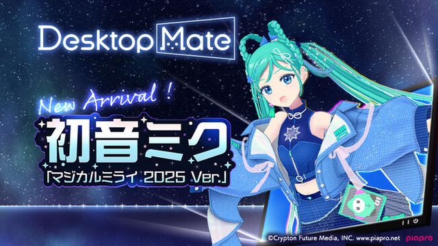 株式会社インフィニットループ(本社:北海道札幌市、代表取締役社長:小野真弘)は、デスクトップマスコットプラットフォーム「Desktop Mate」の新DLCとして、初音ミク「マジカルミライ2025 Ver.」を本日2025年7月24日(木)よりSteamにてリリースいたしました。