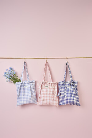 4つのアイテムはそれぞれピンク、サックス、ネイビーの3カラーで展開。お好みのアイテムをギンガムシリーズでお揃いでお使いいただくのもおすすめです。