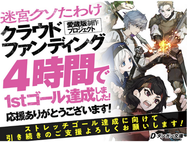 株式会社BookBase(本社:大阪市)は7月25日よりクラウドファンディングを開始した累計5500万PV超えの傑作『迷宮クソたわけ』(著・イワトオ、イラスト・冬野ユウキ)のプロジェクトについて、目標金額の達成とストレッチゴールの設定をお知らせします。