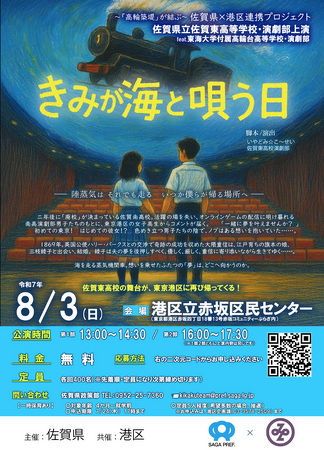 このたび、新たに書き下ろしたオリジナル脚本を用意し、佐賀県立佐賀東高等学校演劇部が再び東京都港区で、下記のとおり東海大学付属高輪台高等学校演劇部と高輪築堤を題材にしたコラボ演劇公演を上演します。