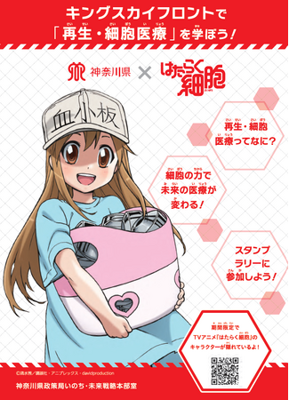 県では、「再生・細胞医療」の産業化を推進しており、こうした取組をより一層わかりやすく伝えるため、 『はたらく細胞』とコラボした「再生・細胞医療」スタンプラリーを開催します。 今回のコラボにより、『はたらく細胞』の親しみやすいキャラクターを通じて、最新の研究を知っていただく ことで、若い世代の皆さんに、健康や科学に興味を持つきっかけとなることを期待しています。