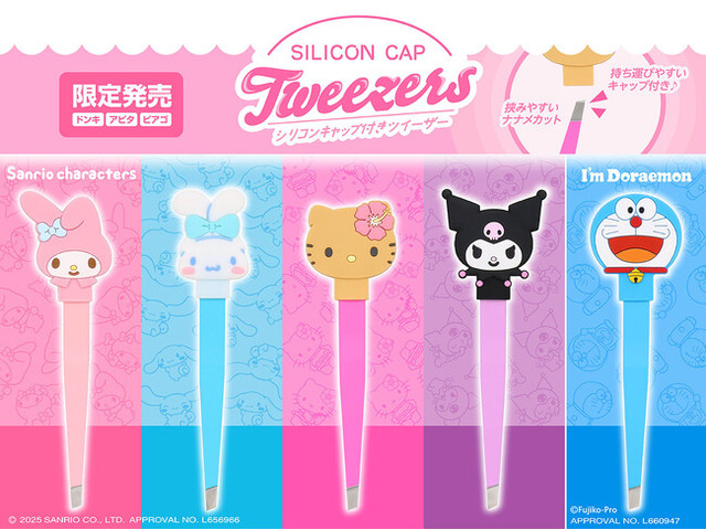 化粧品、化粧雑貨、服飾雑貨及びキャラクター雑貨等の企画・製造・販売、コンタクトレンズの企画・販売を行う粧美堂株式会社(本社:東京都港区、代表取締役社長:寺田正秀、以下 粧美堂)は、株式会社サンリオがデザインした「サンリオキャラクターズ」と「アイムドラえもん」のシリコンキャップ付きツイーザーを全国のドン・キホーテ系列店舗(一部店舗を除く)にて2025年7月下旬より順次発売いたします。