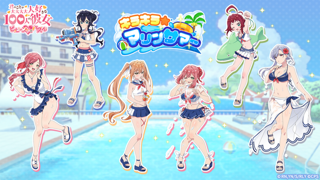 ポッピンゲームズジャパン株式会社(本社:東京都港区、代表取締役 CEO:谷口祐一郎)と合同会社ChicPixel Studioは、TVアニメ『君のことが大大大大大好きな100人の彼女』(以下、『100カノ』)初のスマートフォン向けゲームアプリ『君のことが大大大大大好きな100人の彼女 ビビーン!!とパズル』(以下、『100パズ』)で、本日2025年7月31日(木)より「【マリンサマー】院田唐音&栄逢凪乃&薬膳楠莉ピックアップ2倍ガチャ」を開催しました。ピックアップガチャでは、水着衣装を着たキャラクターが登場します。
