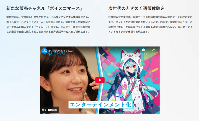“さあ行こう!次のワクワクする世界へ”をスローガンに掲げ、AI技術と電話を組み合わせた音声通販サービス「テレAI」「テレAIカート」を展開するボイスコマーススタートアップです。