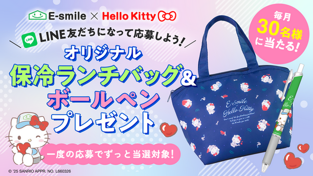 町の水道屋さんイースマイルでは、ハローキティ オリジナルデザインの保冷ランチバッグ&ボールペンが当たる、LINE友だち限定キャンペーンを実施中。イースマイル公式LINEとお友だちになれば、どなたでもご応募いただけます。