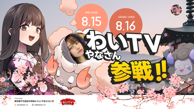 ※プレオープンの8月15日に、やなさんの来店はありません。やなさんが休憩中などの理由で、すぐに対応できない可能性があります。また当日は大変混雑することが予測されます。混雑時には整理券入場による対応を行う可能性がありますので、最新情報は店舗の公式X(@WaiTV_akiba)をご確認ください。その他のイベント情報は、当日の店舗状況などに応じて急遽変更する可能性があります。予めご了承ください。