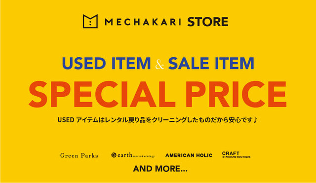 この「メチャカリ・ストア」では、当社のファッションサブスクリプションサービス「メチャカリ」でのレンタル返却品を、丁寧にクリーニングした高品質なユーズド商品として販売します。取り扱いブランドには、earth music&ecology、AMERICAN HOLIC、Green Parksなどが含まれ、人気商品も特別価格でご用意しております。