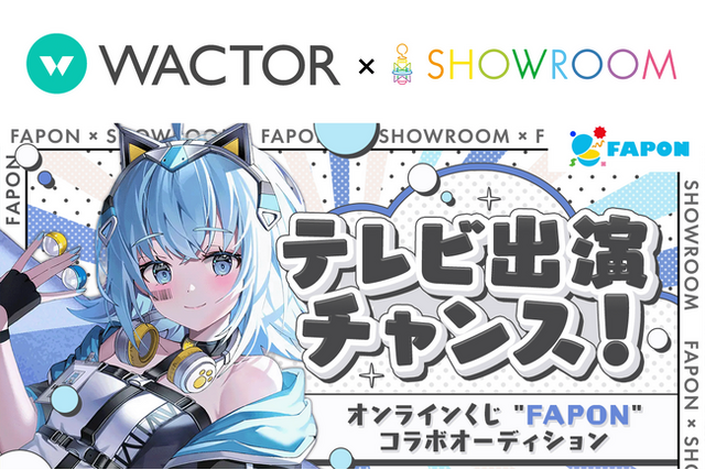 FAPONタイアップ&屋外広告&テレビCMコラボ権利を用意!株式会社WACTORが提供するオンラインくじサービス『FAPON』とのコラボオーディションがSHOWROOMにて初開催!