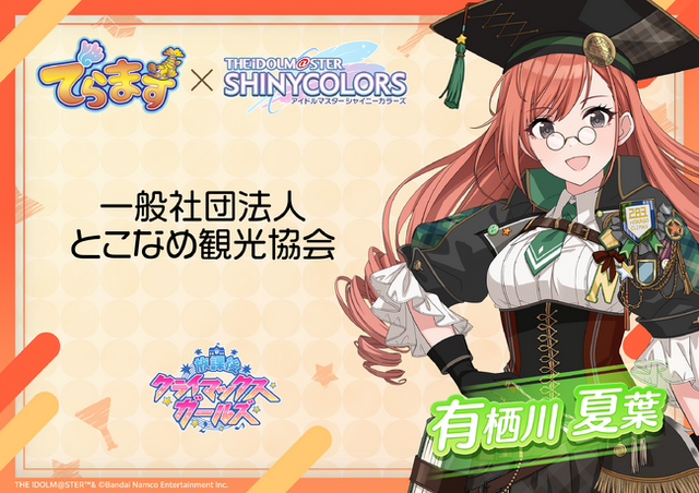 一般社団法人とこなめ観光協会は、「でらます」×『アイドルマスター シャイニーカラーズ』のコラボレーション企画に参加し、8月8日(金)~9月30日(火)までの期間で、常滑限定のオリジナル商品を販売します。