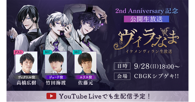 番組では、ゲストの皆さんとこれまでのイケメンヴィランを振り返る新コーナーや、ここでしか楽しめない朗読劇の生アフレコなど、企画盛りだくさんでお送りします。また、イベントの様子は生放送番組「イケメンヴィラン生放送 ヴィラなま」としてイケメンシリーズ公式YouTubeチャンネルでも配信しますので、会場に来られない方も、ここでしか見られない豪華な生配信をどうぞお見逃しなく。
