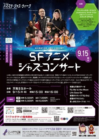 ハママツ・ジャズ・ウィーク事務局(主催:浜松市、(公財)浜松市文化振興財団、静岡新聞社・静岡放送、ヤマハ(株)、ヤマハ音楽振興会)では、10月に開催の第33回ハママツ・ジャズ・ウィークに先駆け、関連事業としてSFアニメジャズコンサート~天竜川・浜名湖地域合併20周年記念~を以下のとおり開催します。現在、各プレイガイドにてチケットを好評発売中ですので、広報方よろしくお願いいたします。