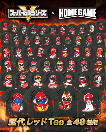 スーパー戦隊50周年を記念して、『スーパー戦隊シリーズ×HOMEGAME歴代レッドTee』全49種類が販売決定!
