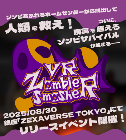 株式会社ツクリエ(本社:東京都千代田区 代表取締役:鈴木英樹 以下、ツクリエ)が東京都から受託運営する東京コンテンツインキュベーションセンター(以下、TCIC)に入居している株式会社デジタルリージョン(本社:東京都、代表取締役:石田 精一郎)は、アミューズメント施設向けに自社開発した新作VRゲーム『VR Zombie Smasher(ブイアール・ゾンビ・スマッシャー)』のリリースを記念し、KATVR JAPANおよびZEXAVERSE TOKYOの協力のもと、2025年8月30日(土)に銀座「ZEXAVERSE TOKYO」にてお披露目イベントを開催いたします。