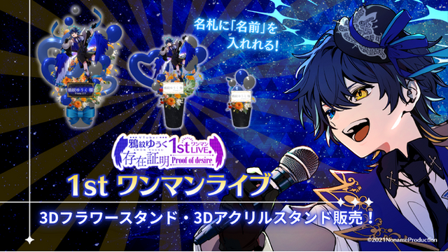 NTTドコモグループ※1の新規事業創出プログラム「docomo STARTUP(TM)」を通じてスピンアウト※2した株式会社CrossVision(以下、クロスビジョン)は、同社のサービスV-tamp(ブイタンプ)において、VTuber事務所「のなめぷろだくしょん」と連携し、所属VTuber「鴉紋ゆうく」1stワンマンLIVE『存在証明 -Proof of desire-』の開催を記念して3Dフラワースタンド・3Dアクリルスタンドの販売を開始したことをお知らせ致します。