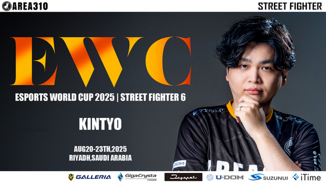 この度、茨城県を拠点とするeスポーツチーム「AREA310(エリアサンイチマル)」(運営:株式会社アプリシエイト)のストリートファイター部門に所属するきんちょ選手が、サウジアラビアで開催される「Esports World Cup 2025(以下、EWC2025)」の最終予選である「Last Chance Qualifier(以下、LCQ)」にて3位となり、EWC2025への出場権を獲得しました。