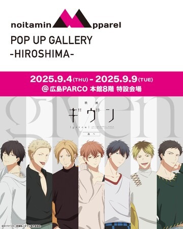 フジテレビ深夜アニメ枠“ノイタミナ”から生まれたアパレルブランド「ノイタミナアパレル」を運営するバナナスピリッツ株式会社(本社:東京都港区 代表取締役:米山博)は、 “ノイタミナ”作品のアパレル雑貨を中心としたECサイトと連携するリアル店舗(ノイタミナアパレル POP UP ギャラリー)を、アニメ『ギヴン』シリーズをフィーチャーしたかたちで、広島PARCOに期間限定でオープンいたします。