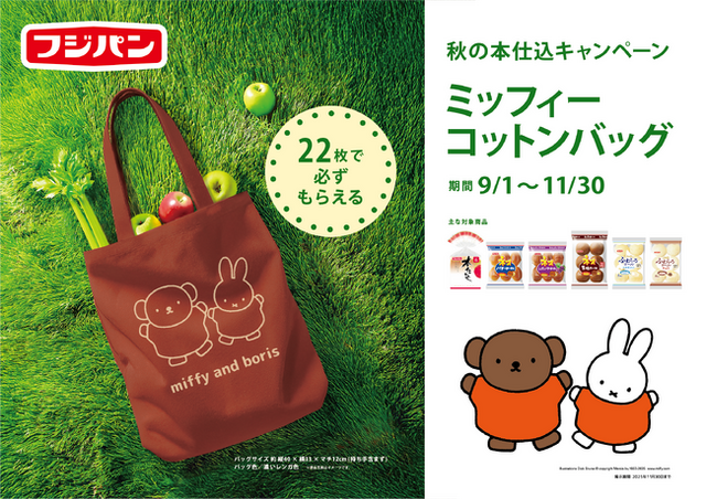 フジパン株式会社(愛知県名古屋市)は、『秋の本仕込キャンペーン ミッフィーコットンバッグ』を9月1日(月)から11月30日(日)までの3か月間実施いたします。