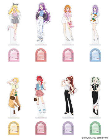 そんな本作より、アクリルスタンドやトレーディング缶バッジなどの新商品が登場! 星宮いちごや神崎美月ら8キャラがペアごとにお揃いのリボンコーデをした、「Link Ribbon」がテーマの描き下ろしイラストを使用しています。そのほか、『アイカツスターズ!』トレーディングミニ色紙や、『アイカツプラネット!』キャラナップコレクションなど、シリーズ作品の商品もラインナップしています。