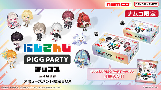 株式会社バンダイナムコエクスペリエンスは、VTuber/バーチャルライバーグループ「にじさんじ」と人気アプリ「PIGG PARTY」(ピグパーティ)とのコラボポテトチップス「にじさんじPIGG PARTYチップス うすしお味 アミューズメント限定BOX」を、2025年8月26日(火)より全国のアミューズメント施設「ナムコ」および「ナムコオンラインクレーン」(以下ナムクレ)限定の景品として展開します。