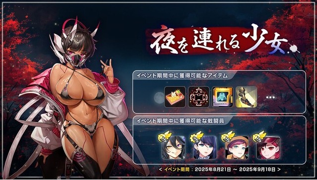 [画像1: https://prcdn.freetls.fastly.net/release_image/155525/66/155525-66-431c21d06115ea2a9ed390eda54a0221-1440x820.jpg?width=536&quality=85%2C75&format=jpeg&auto=webp&fit=bounds&bg-color=fff ]本アップデートより、新規ストーリーイベント「夜を連れる少女」を公開いたしました。