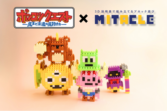 今回のコラボレーションでは、お馴染みのキャラクター「カク」「イムラ」を含む5種類のキャラクターが、“空間ピクセル(ボクセル)”技術で立体化され、ブロックフィギュアとして登場。さらに、「ミツイ」「クロヌマ」「ツチダ」を加え“ポンクエ”をまるっと再現したオリジナルステージのセットも展開。魔物たちのゆるカオスな日常を、高さ約5~6cmの手のひらサイズであなたのお部屋で再現できます。