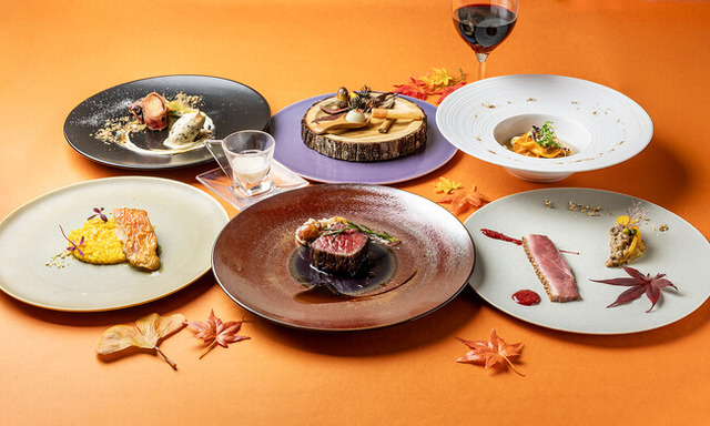 色づく秋の景色をお皿の上に見立てた、目にも鮮やかなお料理の数々をどうぞお楽しみください。
