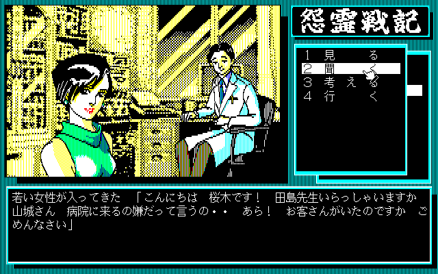 当時のアドベンチャーゲーム界では探偵ものが主流でしたが、この作品は怨霊との戦いと推理を組み合わせたユニークな設定で注目を集めました。独特のビジュアルとサウンドデザインをお楽しみください。