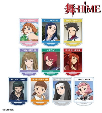 鴇羽 舞衣、玖我 なつき、美袋 命、藤乃 静留、結城 奈緒、杉浦 碧、尾久崎 晶、日暮 あかね、真田 紫子、姫野 二三の印象的なシーンをアクリルスタンドに仕上げました。