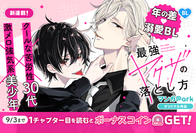 「マンガ Park」 では『最強ヤクザの落とし方』の新連載を記念して、読書チャレンジキャンペーンを実施いたします。期間限定&読めば必ずコインがもらえる BIG チャンス!1 チャプター目を読むと