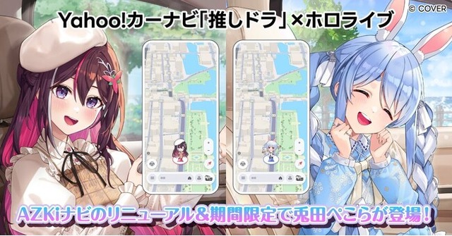 LINEヤフー株式会社(以下、LINEヤフー)が提供する基本無料で利用可能なカーナビアプリ「Yahoo!カーナビ」(iOS版、Android版)は、好みのキャラクターによる音声案内と自車アイコンでナビゲーションが楽しめる「推しドラ」機能(以下、本機能)(※1)の第7弾に、ホロライブ所属VTuber 兎田ぺこらの音声案内とアイコンが登場します。