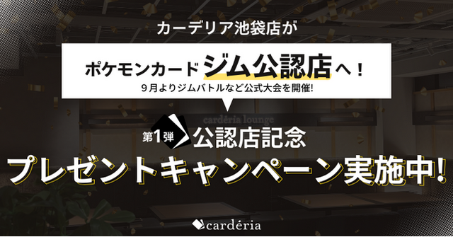 アクセルマーク株式会社(本社:東京都中野区、代表取締役社長:松川裕史、証券コード:3624)が運営するトレーディングカード専門店「carderia(TM)(カーデリア)池袋店」は、ポケモンカード公式から「ポケモンカードジム」の公認店として認定されました。これにより、既に開催中のワンピースカードゲーム、デュエル・マスターズ、ユニオンアリーナに加え、複数タイトルでの公認大会開催体制が充実。9月よりポケモンカードゲームの公式大会を開始するとともに、公式大会開催を記念して人気4タイトルのBOXプレゼントキャンペーンを実施いたします。