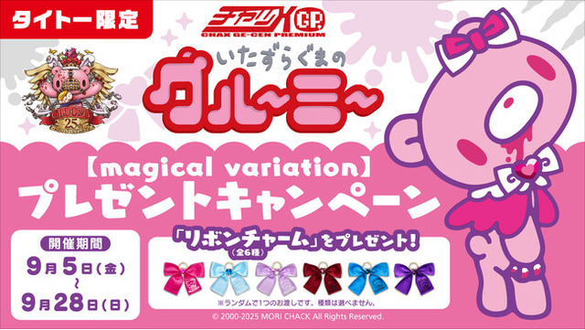 株式会社タイトー(本社:東京都新宿区、以下「タイトー」)は、今年で誕生25周年を迎え、世界中で愛されるかわいくてちょっとだけ凶暴なクマのキャラクター「いたずらぐまのグルーミー」より【magical variation】シリーズがタイトー限定の景品となって、9月5 日(金)より登場することをお知らせいたします。