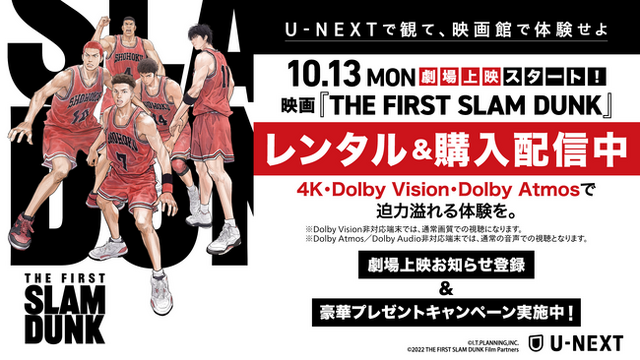 USEN&U-NEXT GROUPの株式会社U-NEXT(本社:東京都品川区、代表取締役社長:堤 天心)が運営する動画配信サービス「U-NEXT」は、映画『THE FIRST SLAM DUNK』を2025年8月29日(金)より配信開始いたします。