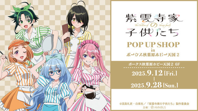 2025年9月12日(金)よりボークス 秋葉原ホビー天国2にて、TVアニメ「紫雲寺家の子供たち」 POP UP SHOP in ボークス秋葉原ホビー天国2の開催が決定いたしました。