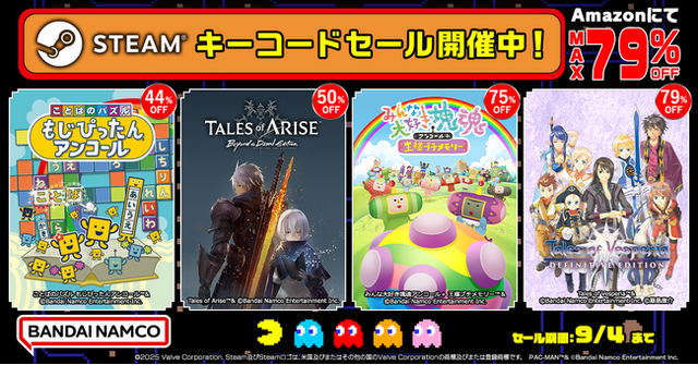 株式会社バンダイナムコエンターテインメントがAmazonにてSTEAMキーコードセールを開催したことをお知らせいたします。