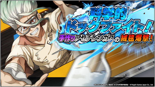 ポッピンゲームズジャパン株式会社は、AppStore/GooglePlayで配信中の『Dr.STONE バトルクラフト』にて新イベント&新ガチャを開催したことをお知らせいたします。